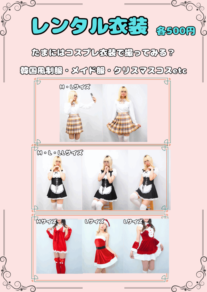 セルフ写真館ectoでは女性用のレンタル衣装のオプションサービスを開始してます♪